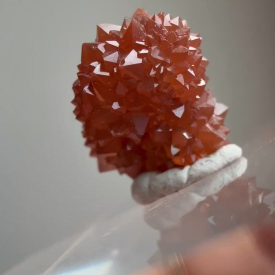 These beautiful red quartz are commonly referred to as “Jacinto de Compostela” after the pilgrims traveling to Santiago de Compostela, who carried them as talismans along their journey. However they are NOT from Jacinto de Compostela… they are from Chela, Valencia, Spain! It used to be thought that "Jacinto"-type quartzes were colored by hematite, but it has been determined that the color is dominantly due to clay mineral inclusions. (Gil Marco, J., 2013)