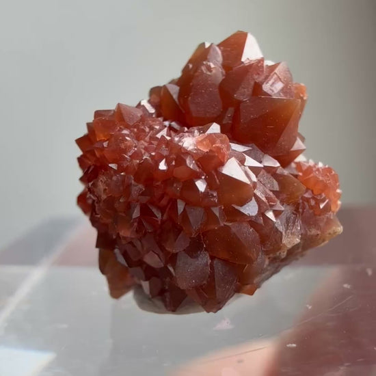 These beautiful red quartz are commonly referred to as “Jacinto de Compostela” after the pilgrims traveling to Santiago de Compostela, who carried them as talismans along their journey. However they are NOT from Jacinto de Compostela… they are from Chela, Valencia, Spain! It used to be thought that "Jacinto"-type quartzes were colored by hematite, but it has been determined that the color is dominantly due to clay mineral inclusions. (Gil Marco, J., 2013)