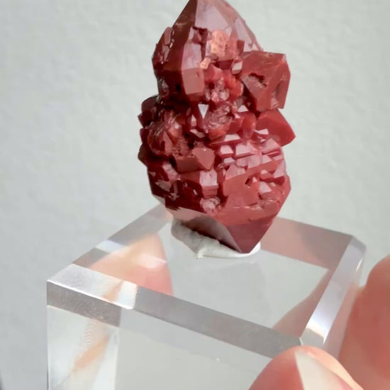 These beautiful red quartz are commonly referred to as “Jacinto de Compostela” after pilgrims traveling to Santiago de Compostela, carried them as talismans along their journey. However they are NOT from Jacinto de Compostela… they are from Chela, Valencia, Spain! It used to be thought that "Jacinto"-type quartzes were colored by hematite, but it has been determined that the color is dominantly due to clay mineral inclusions. (Gil Marco, J., 2013)