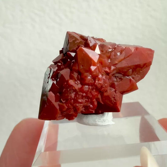 These beautiful red quartz are commonly referred to as “Jacinto de Compostela” after pilgrims traveling to Santiago de Compostela, carried them as talismans along their journey. However they are NOT from Jacinto de Compostela… they are from Chela, Valencia, Spain! It used to be thought that "Jacinto"-type quartzes were colored by hematite, but it has been determined that the color is dominantly due to clay mineral inclusions. (Gil Marco, J., 2013)