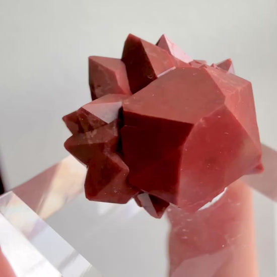 These beautiful red quartz are commonly referred to as “Jacinto de Compostela” after pilgrims traveling to Santiago de Compostela, carried them as talismans along their journey. However they are NOT from Jacinto de Compostela… they are from Chela, Valencia, Spain! It used to be thought that "Jacinto"-type quartzes were colored by hematite, but it has been determined that the color is dominantly due to clay mineral inclusions. (Gil Marco, J., 2013)