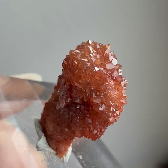 These beautiful red quartz are commonly referred to as “Jacinto de Compostela” after the pilgrims traveling to Santiago de Compostela, who carried them as talismans along their journey. However they are NOT from Jacinto de Compostela… they are from Chela, Valencia, Spain! It used to be thought that "Jacinto"-type quartzes were colored by hematite, but it has been determined that the color is dominantly due to clay mineral inclusions. (Gil Marco, J., 2013)