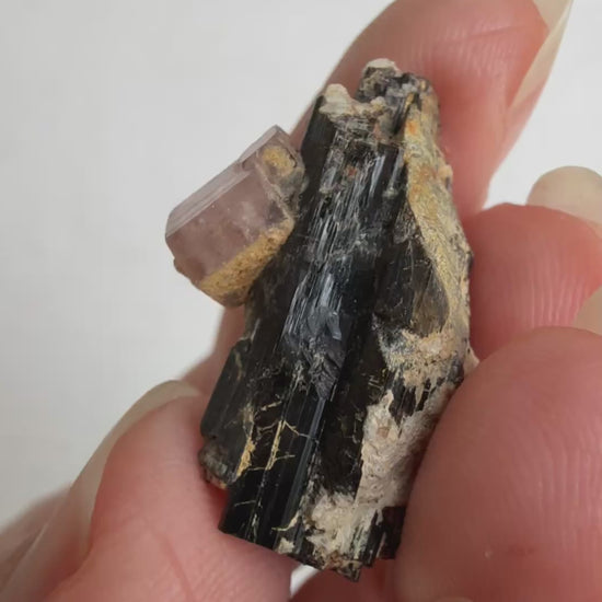 A Gorgeous little specimen of Pink Apatite on Black tourmaline,